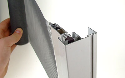 Tato rolovací síť pro dveře je flexibilní a snadno se montuje na rámy dveří i na jejich ostění. Konečná lišta je udržována ve vysunuté pozici pomocí magnetické gumy.